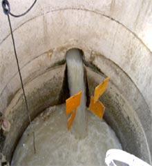 Kanalizasyona asılan, bir tel ızgarayla güçlendirilmiş
